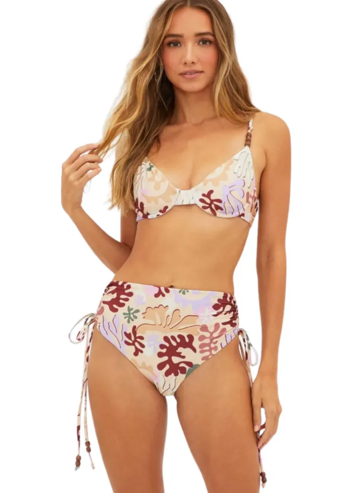 The Beach Riot Carrie Top is our new underwire top with adjustable crossed straps in the back. This top features woodlike beading on the straps. Pair this top with our matching Heather Bottom in Desert Succulent.
