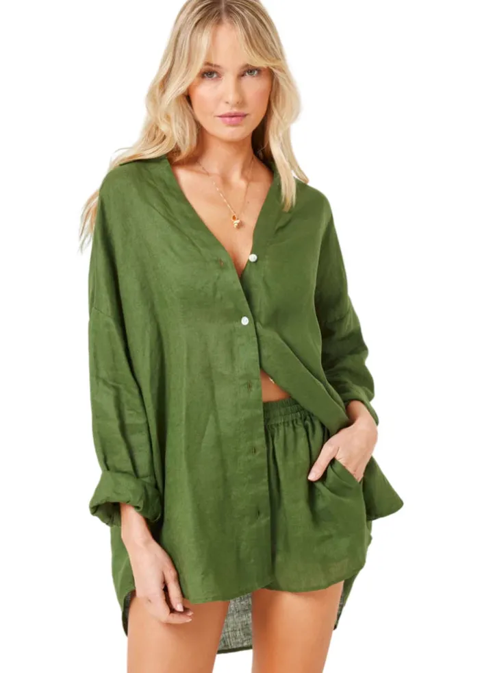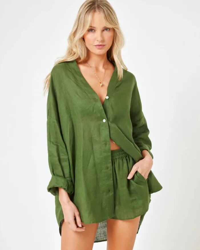 Tailored, refined details pair up with an oversize silhouette to make your new favorite shirt. The L*Space Rio Tunic – Jungle is an essential part of any capsule wardrobe.